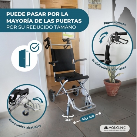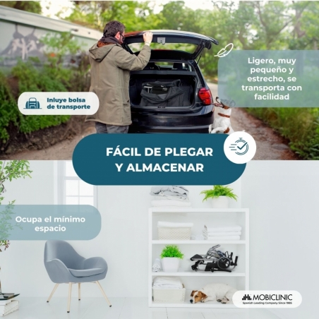Gracias al fácil plegado y ligereza de esta silla de ruedas de aluminio es posible transportarla a cualquier lado con el mínimo esfuerzo (además incluye bolsa para transporte). Esto permite poder guardarla de forma cómoda en casa o incluso plegarla si la necesitas meter en lugares estrechos.