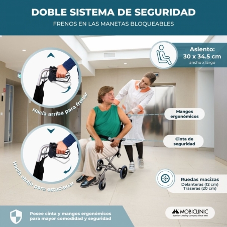 SEGURA: dispone de una doble barra de seguridad fabricada con material ignífugo para aportar mayor resistencia a esta silla de ruedas para ancianos.