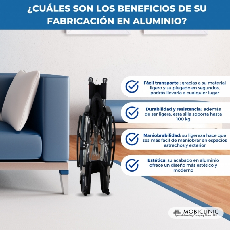ULTRALIGERA Y FÁCIL DE TRANSPORTAR: gracias a su fabricación en aluminio, la silla Palacio es increíblemente ligera comparada con las sillas de acero, lo que facilita su movilidad. Además al ser una silla de ruedas plegable, podrá transportarla o guardarla con mucha facilidad allá donde desee.