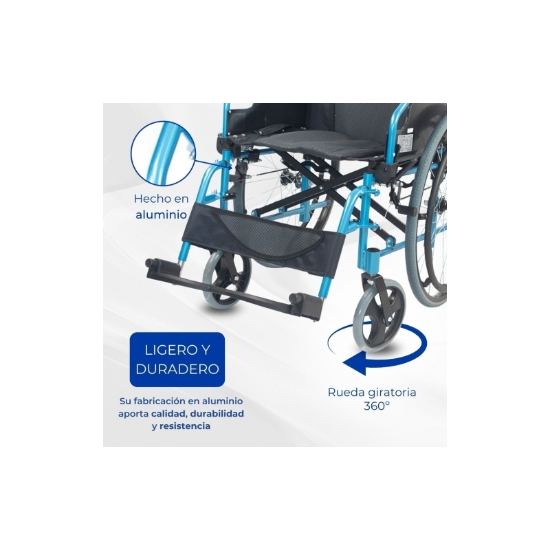 Además, tiene reposapiés desmontables, para una mayor seguridad del usuario y reposabrazos abatibles acolchados, lo que mejora el confort, facilita la transferencia del paciente y evita posibles úlceras por el roce, convirtiéndola en la mejor opción de sillas de ruedas plegables y ligeras.