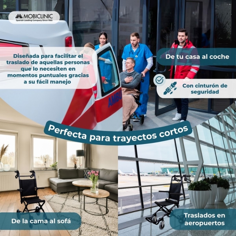 La doble barra inferior de la que dispone aporta mayor sensación de seguridad, estando además fabricada con material ignífugo. El respaldo y asiento ergonómicos de la silla ortopédica permiten la máxima comodidad de los pacientes, así como la de sus acompañantes, ya que permite la subida tanto de los reposabrazos como de los reposapiés. En resumen, esta es la silla de ruedas plegable ideal si lo que buscas es seguridad, comodidad y facilidad de uso.