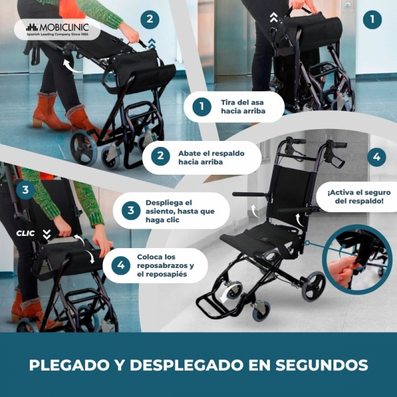 PLEGABLE: esta silla de ruedas plegable fabricada en aluminio para hacer un desplazamiento ligero sin perder en ningún momento la estabilidad.