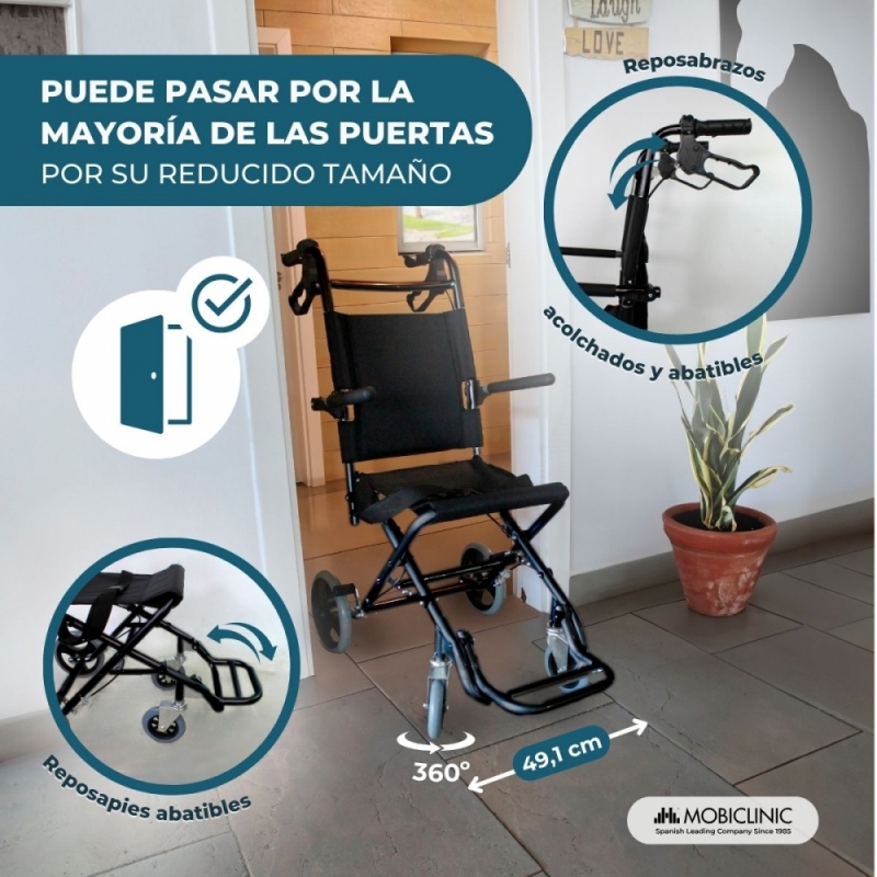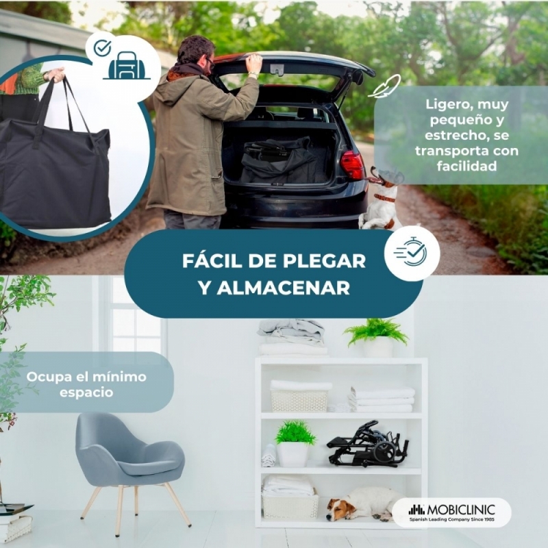 Gracias al fácil plegado y ligereza de esta silla de ruedas de aluminio es posible transportarla a cualquier lado con el mínimo esfuerzo (además incluye bolsa para transporte). Esto permite poder guardarla de forma cómoda en casa o incluso plegarla si la necesitas meter en lugares estrechos.