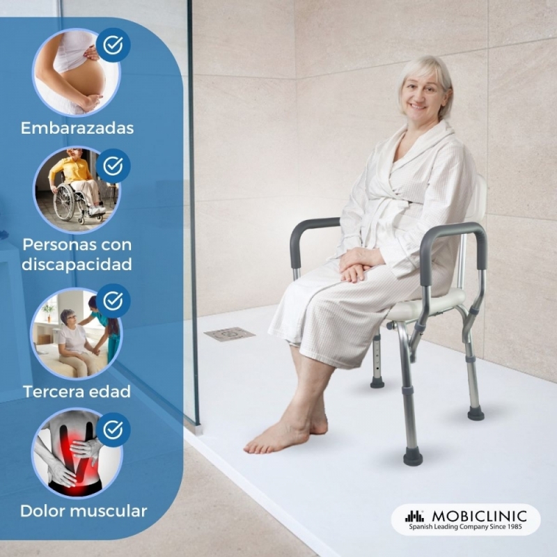 FACILIDADES PARA SU DÍA A DÍA: gracias a la silla de ducha modelo Puerto, podrás disfrutar de sus duchas o baños sin esfuerzos y con total seguridad y comodidad.