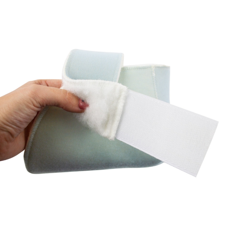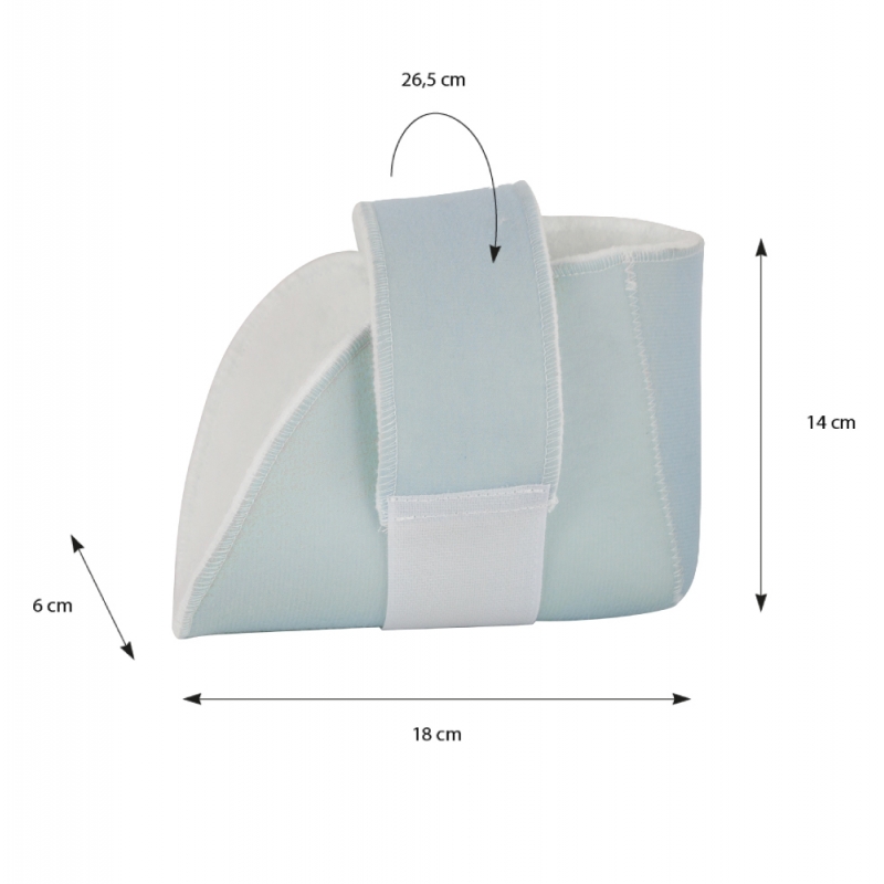 Está forrado de velour en la parte exterior, que permite la fijación del velcro en toda su superficie y permite ajustar el dispositivo a la medida deseada para una correcta sujeción y confort. Se puede colocar tanto en codo como en talón y se puede utilizar en ambos lados del cuerpo.