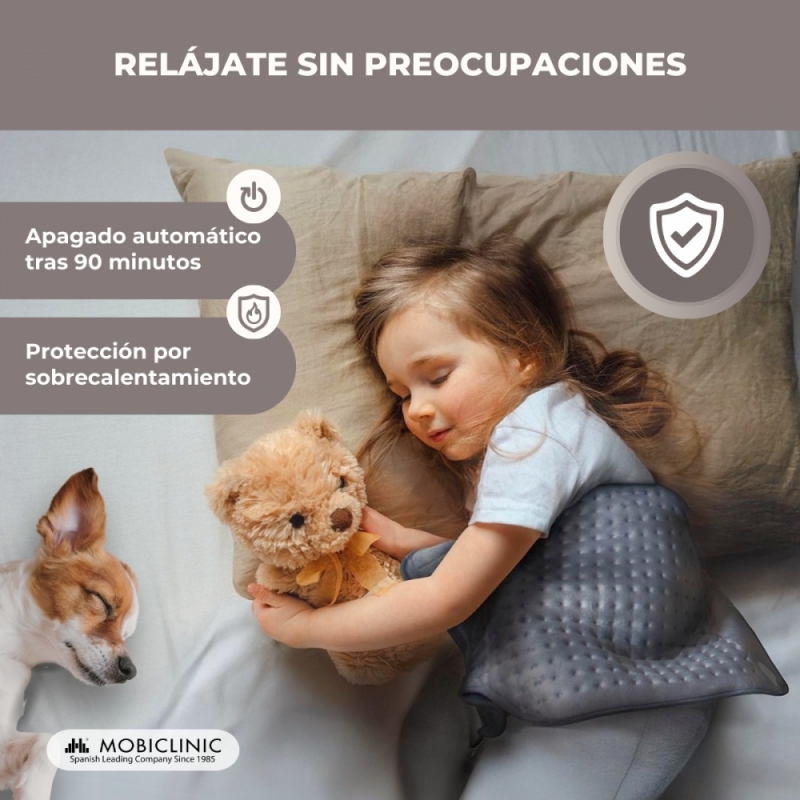 APAGADO AUTOMÁTICO: Pensando en tu seguridad mientras descansas, la almohadilla se desconecta automáticamente después de 90 minutos de uso.