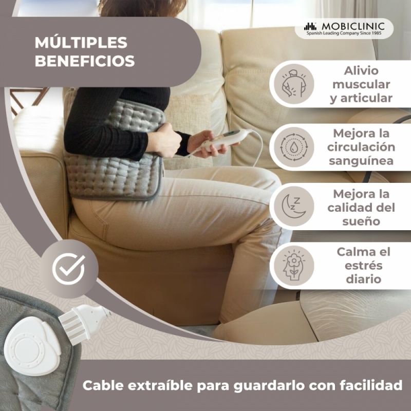 Te ofrecemos una almohadilla eléctrica de 40x30 cm., inteligente y térmica que te proporcionará calor suave para tu bienestar.