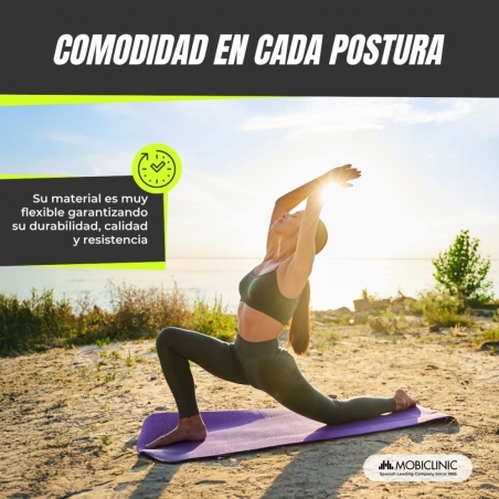 Esta colchoneta está diseñada especialmente para los amantes del yoga y el pilates, para que practiquen estos ejercicios independientemente del nivel que ejerzan. También está indicado para ejercicios en el preparto de embarazadas.
