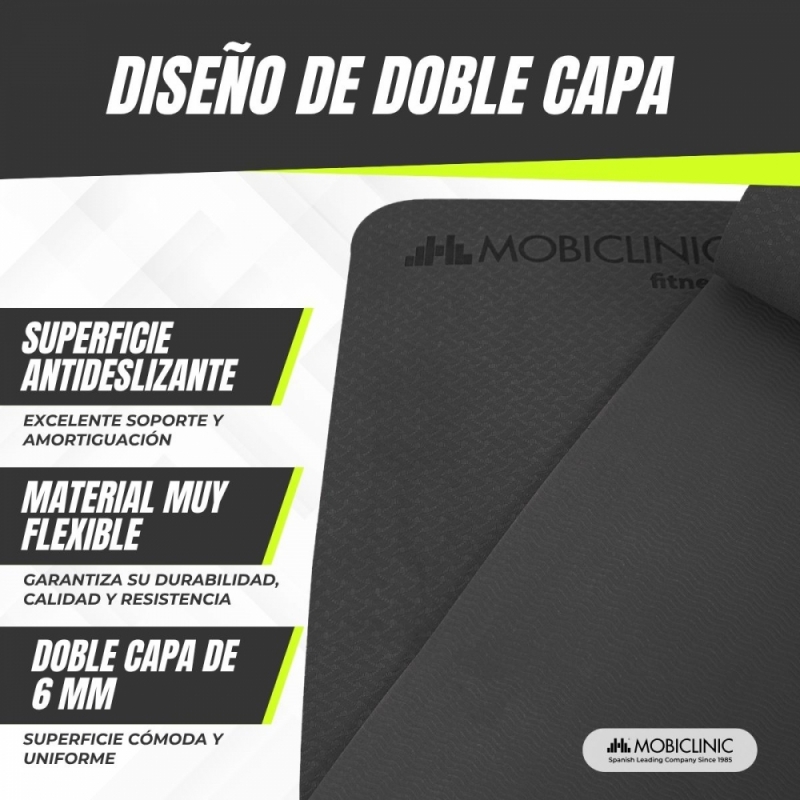 Igualmente, su diseño de doble capa hacen que sea completamente antideslizante evitando que la esterilla se desplace tanto del cuerpo como en diferentes tipos suelo, ya que cuenta con tejidos antideslizantes por ambos lados proporcionando un buen agarre durante todo el entrenamiento. Esta característica permite que el usuario pueda practicar numerosas posturas del yoga y pilates entre ellas las que tratan de mantener el equilibrio.