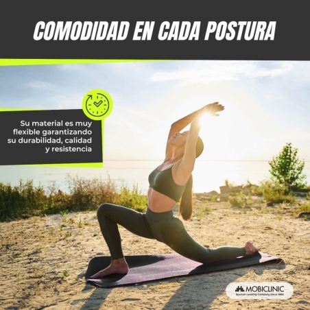 Esta colchoneta está diseñada especialmente para los amantes del yoga y el pilates, para que practiquen estos ejercicios independientemente del nivel que ejerzan. También está indicado para ejercicios en el preparto de embarazadas.