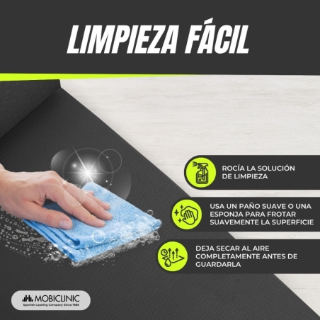 Una vez finalizado el ejercicio, esta esterilla es muy fácil de limpiar, ya que simplemente tendrás que lavarla con un paño con agua y jabón, luego enjugarla y finalmente secarla con un paño seco. De esta forma, puedes mantener tu alfombrilla como el primer día.